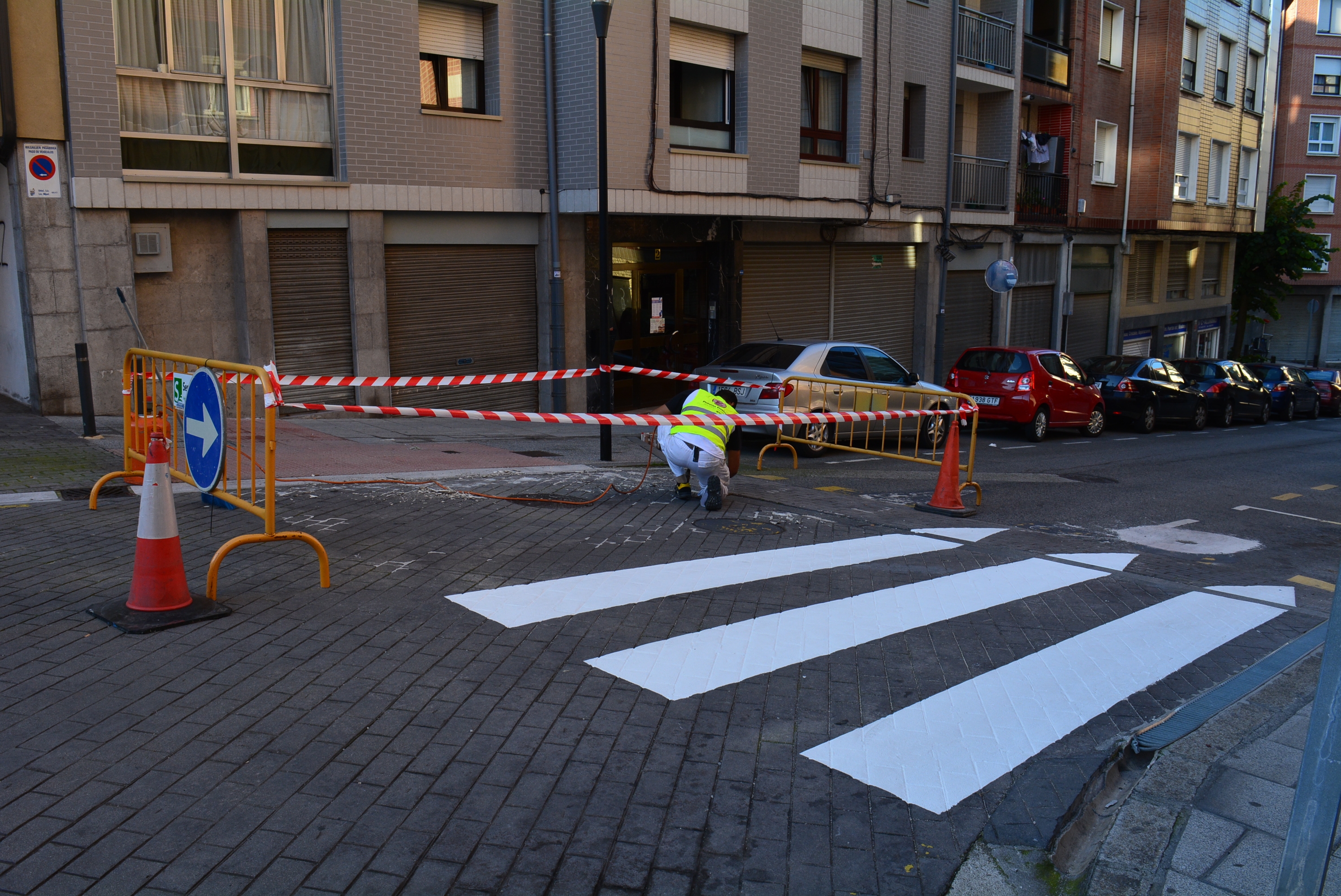El Ayuntamiento de Sestao, a través del área de Obras y Mantenimiento de Edificios y Espacios Públicos, está acometiendo esta semana el repintado de once pasos de peatones cuya pintura se encontraba desgastada por el paso del tiempo y de vehículos, mejorando de esta forma su visibilidad y, con ello, la seguridad vial.